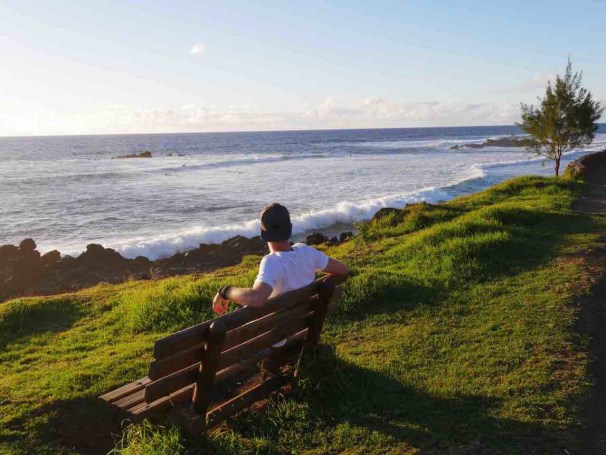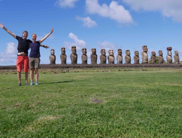 As we don’t want to miss the sight Orongo and the beautiful view from the crater, we make sure to make the most out of our last day here. We are lucky to get another day of fantastic weather and after hiking up to these sights, we are returning to the village to look for the perfect Moai souvenir to take with us back home. This is not as easy as it might sound as Lukas are looking for the perfect one, and there are many talented local artists on this island. Very happy with finding “the one” we celebrate this fantastic evening with a drink and by watching the sunset at Tahai for the very last time.