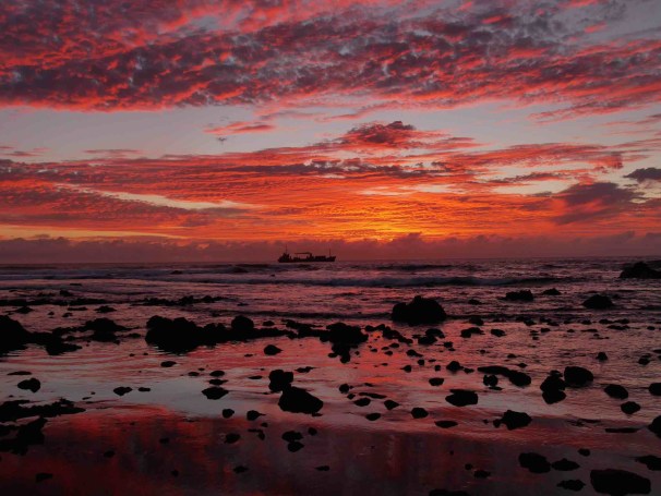 Our first sunset here is magical and after watching it together with probably more than hundred other people at Tahai, THE sunset place at this Island, we enjoy a nice dinner and a glas of red wine in the restaurant at our hotel.